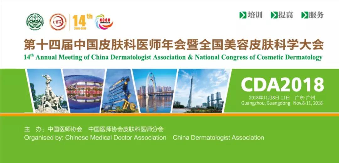 2018年11月8日-11日,第十四屆中國皮膚科醫師年會暨全國美容皮膚科學大會將于廣東省廣州市白云國際會展中心召開。